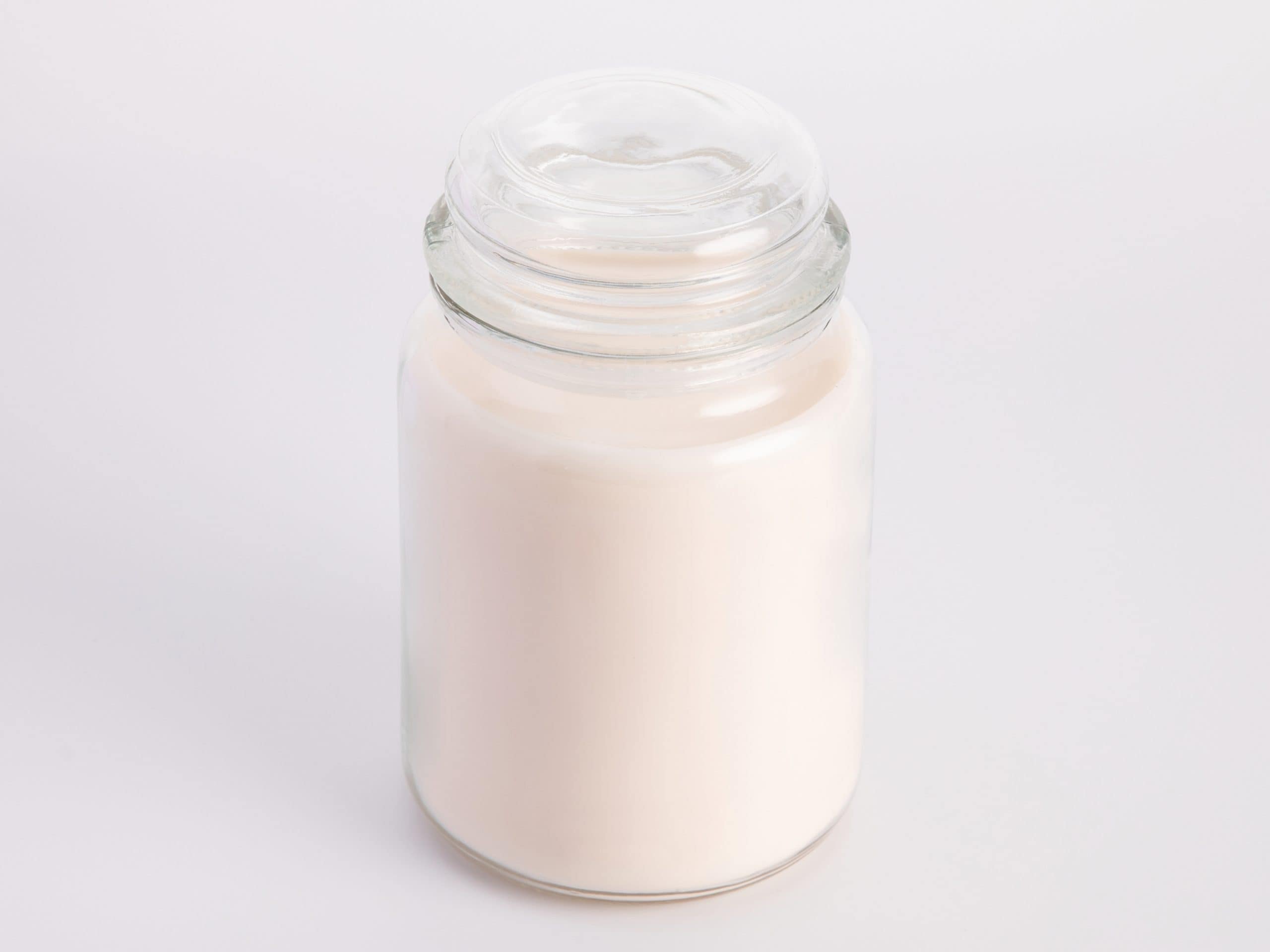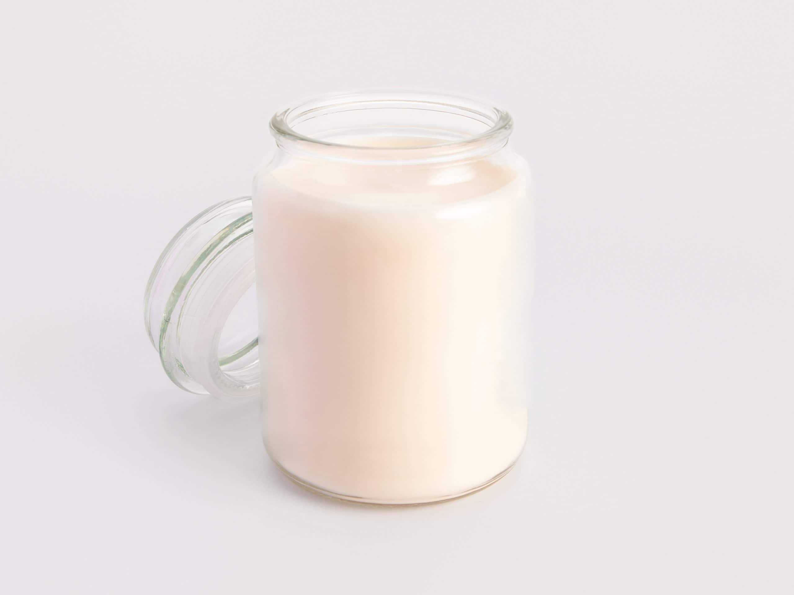 A tall, vertical glass candle in a classic bottle design with a matching glass lid. Its height ensures a particularly long burn time and makes a striking statement in any room.